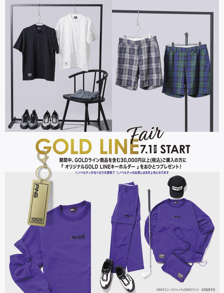 7/1(火)から7/31(木)期間中、GOLDライン商品を含む30,000円以上(税込)ご購入の方にオリジナルGOLD LINEキーホルダーをおひとつプレゼントいたします!